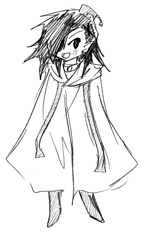 リディアンの衣装、外套を前でちゃんと合わせるとこんな感じ。てるてる坊主。