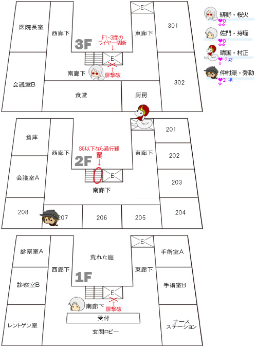 トリハピ:サバイバルゲーム(廃病院見取り図)