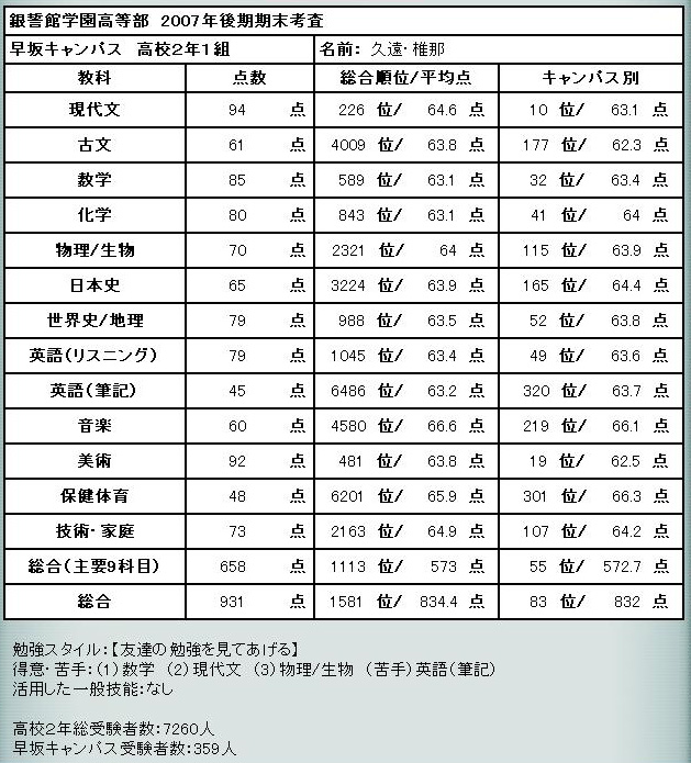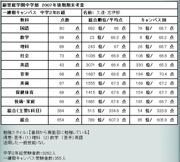 後期期末テスト結果発表