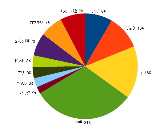 まぁ、数日後にはプロフィール修正されて、昆虫の種類も変更になってるかもしれませんので、あくまで参考程度の資料とお思い頂ければ幸いです。
